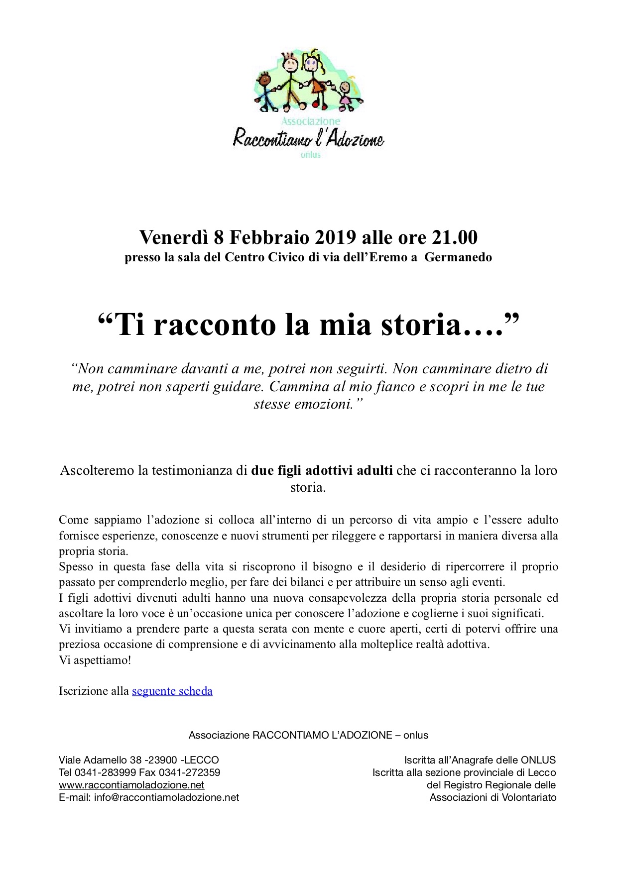 presso la sala del Centro Civico di via dell’Eremo a Germanedo “Ti racconto la mia storia….”