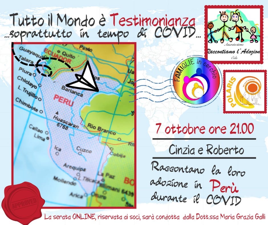 Tutto il mondo è testimonianza.....soprattutto in tempo di Covid - Perù Cinzia & Roberto raccontano la loro adozione in Perù - Venerdì 7 ottobre 2022 h. 21.00 ONLINE