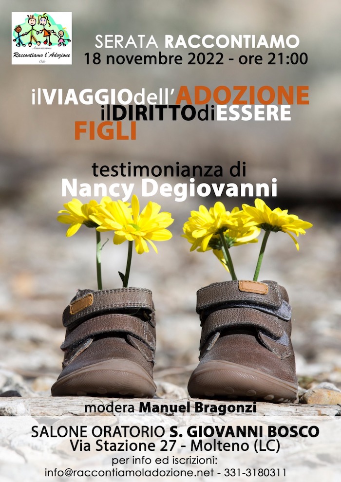 Il viaggio dell’adozione, il diritto di essere figli Venerdì 18 novembre 2022 h. 21.00 Salone dell’oratorio San Giovanni Bosco , Molteno (LC)