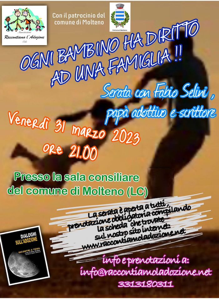 Serata con Fabio Selini, papà adottivo e scrittore Venerdì 31 marzo 2023 h.21.00 Presso la sala consiliare del comune di Molteno (LC)