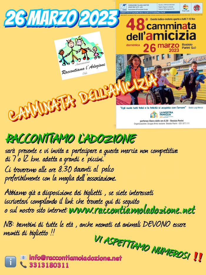 Camminata dell’amicizia Domenica 26 marzo 2023 ore 8.30