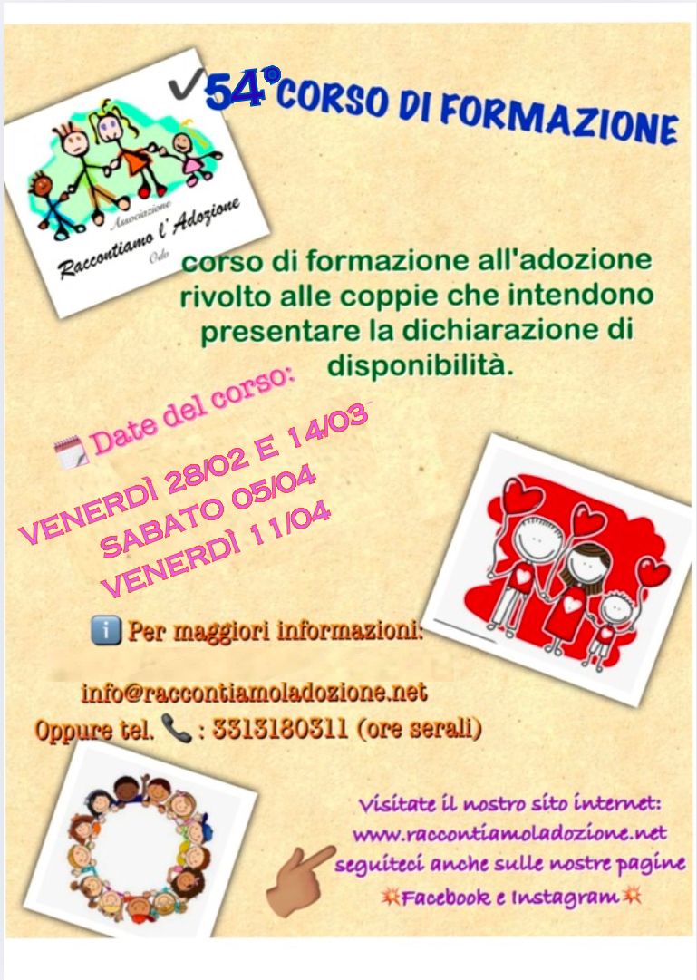 Proponiamo il seguente corso di formazione all'adozione rivolto alle coppie che intendono presentare la dichiarazione di disponibilità.