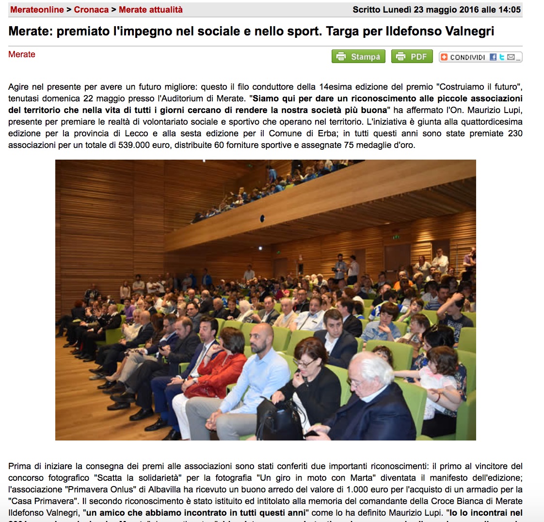 Associazione Raccontiamo l'Adozione ONLUS di Lecco, per l'importante opera di accompagnamento e sostegno alle famiglie che intraprendono la grande avventura dell'adozione: premio da 2.000 euro consegnato da Giovanni Priore, presidente di Acel Service, sponsor del premio e da Vittorio Colombo, direttore de La Provincia di Lecco