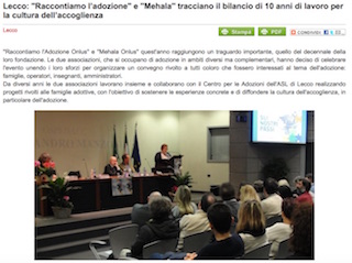 Lecco: ''Raccontiamo l’adozione'' e ''Mehala'' tracciano il bilancio di 10 anni di lavoro per la cultura dell’accoglienza Leccoonline 10 novembre 2014